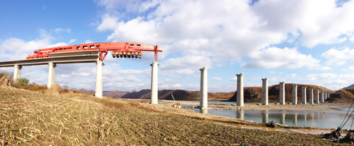 運架一體機適用于山區鐵路客運專線(橋隧相連)20m、24m、32m雙線整孔混凝土箱梁(含曲線梁、現澆梁前后的箱梁)的架設;能在鐵路客運專線混凝土箱梁預制場吊運,并能夠把混凝土箱梁從預制場地通過便道、路基、橋梁(包括鋼結構連續梁、單跨及多跨連續現澆梁等)、涵洞運至架梁工位完成架梁作業,而且對路基及橋面不造成任何損害;可在不需要輔助設施的情況下,利用設備自身功能和輔具,進行工地轉移、調頭、吊運混凝土箱梁穿越鐵路客運專線雙線隧道,并能做到在作業過程中不會和已完成工程發生碰撞,方便快捷的完成孔梁之間的架設任務。